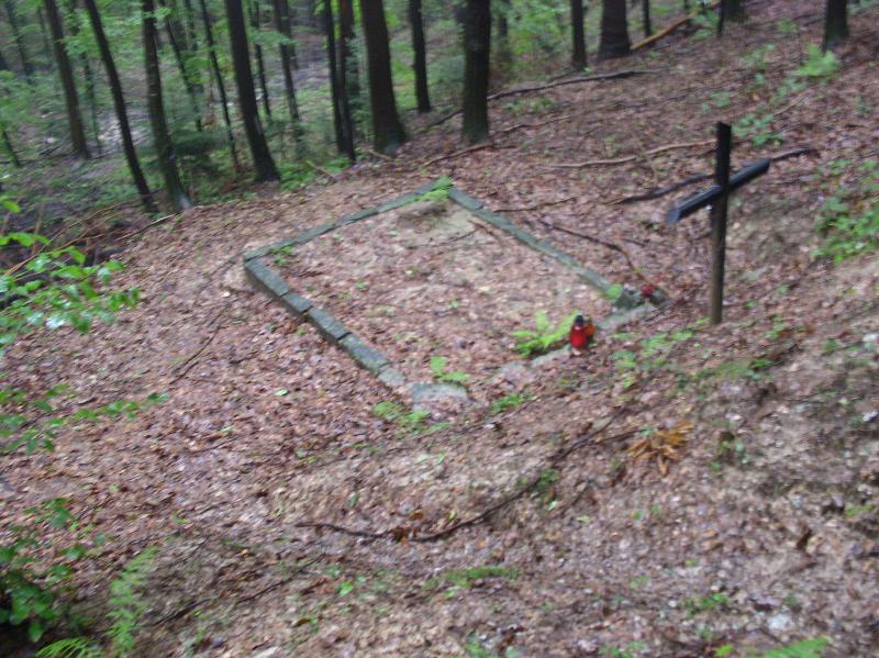 Pochowano tu poległych 5 października 1944 r. w walce z siłami niemieckim żołnierzy I kompanii 16 pp Armii Krajowej. Wśród poległych znalazło się 6 żołnierzy Armii Krajowej przebywających w lazarecie i lekarz Wojciech Mossoczy. Zwłoki pochowanego tu pierwotnie Piotra Wolaka ekshumowano w 1945 r. na cmentarz parafialny w Paleśnicy.