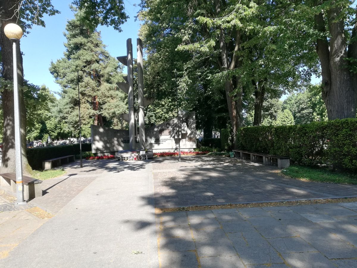25 listopada 1945 r. pochowano tu 23 żołnierzy Armii Krajowej z I batalionu „Barbara” , z placówki „Monika” mościckiego hufca Szarych Szeregów oraz 18 nieznanych z nazwiska osób rozstrzelanych przy rzece Białej. Pomnik według projektu Jacka Sumary został wzniesiony w 1975 r. W latach dziewięćdziesiątych na pomniku umieszczony krzyż z figurą Chrystusa oraz symbole związane z przynależnością organizacyjną pochowanych w mogile osób.