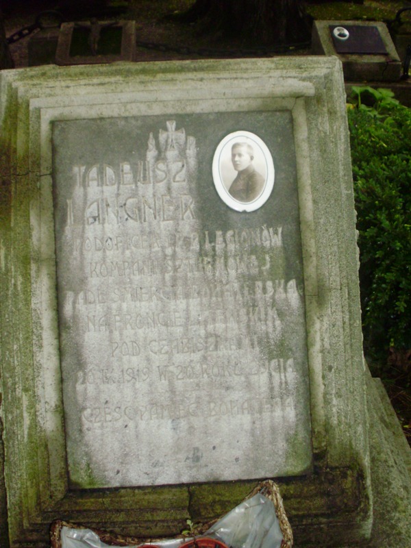 Pochowany tu Tadeusz Langner starszy szeregowy 1 Pułku Piechoty Legionów poległ lub zmarł z ran 20 września 1919 r. w Czabiszkach.