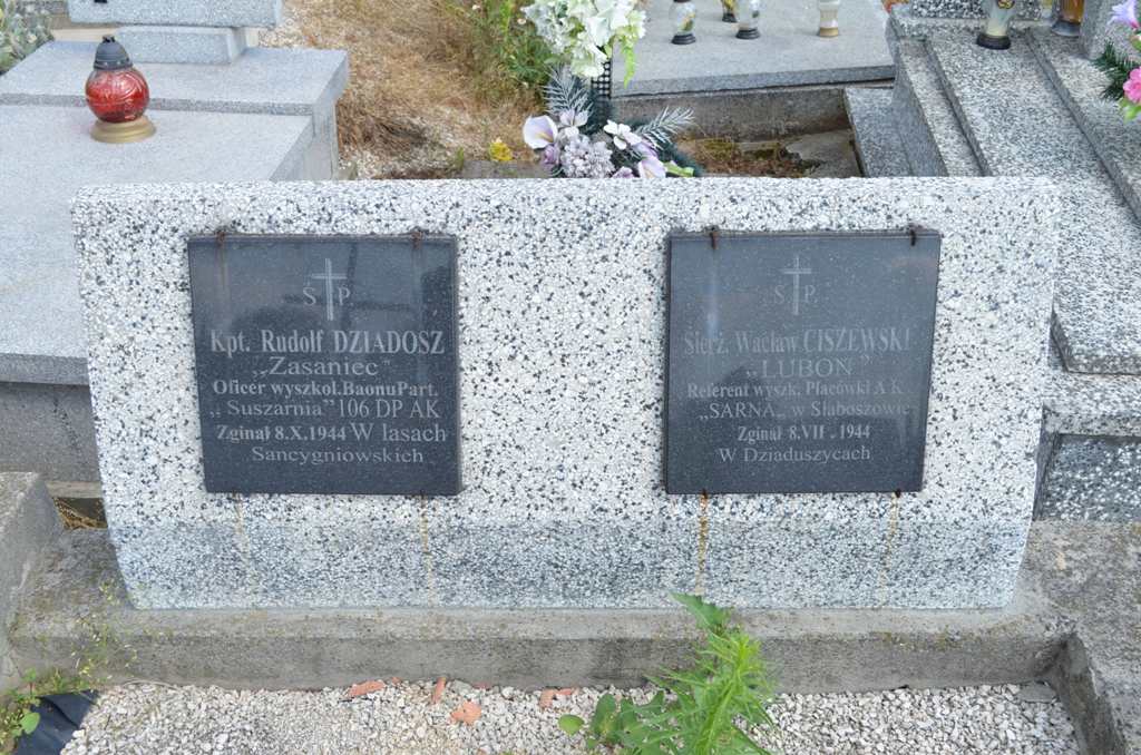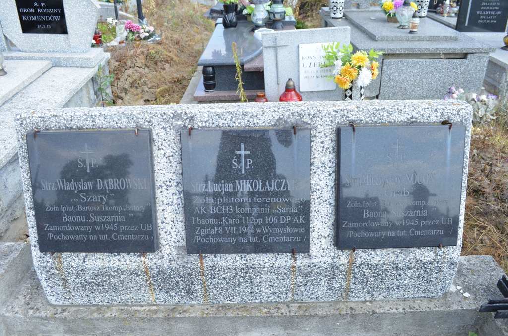 Podporucznik Stanisław Jazdowski ps. "Żbik" dowódca OP Skrzetuski poległ 16 sierpnia 1944 r. w Górach Miechowskich. Ciało pochowano w nocy 16/17 sierpnia na cmentarzu parafialnym w Słaboszowie.