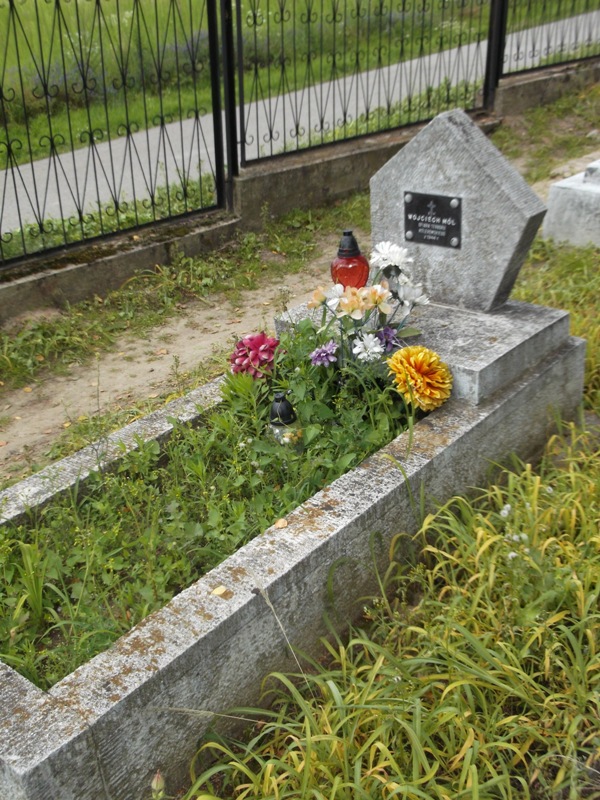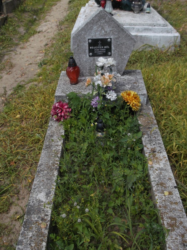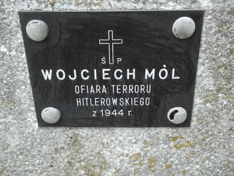 Mogiła ziemna w betonowym obramowaniu, u wezgłowia stela w kształcie niesymetrycznego pięcioboku z prostokątną, czarna tabliczką z napisem: „چP/ WOJCIECH MÓL/ OFIARA TERRORU/ HITLEROWSKIEGO/ Z 1944 r.”