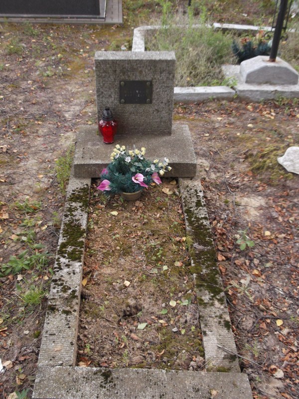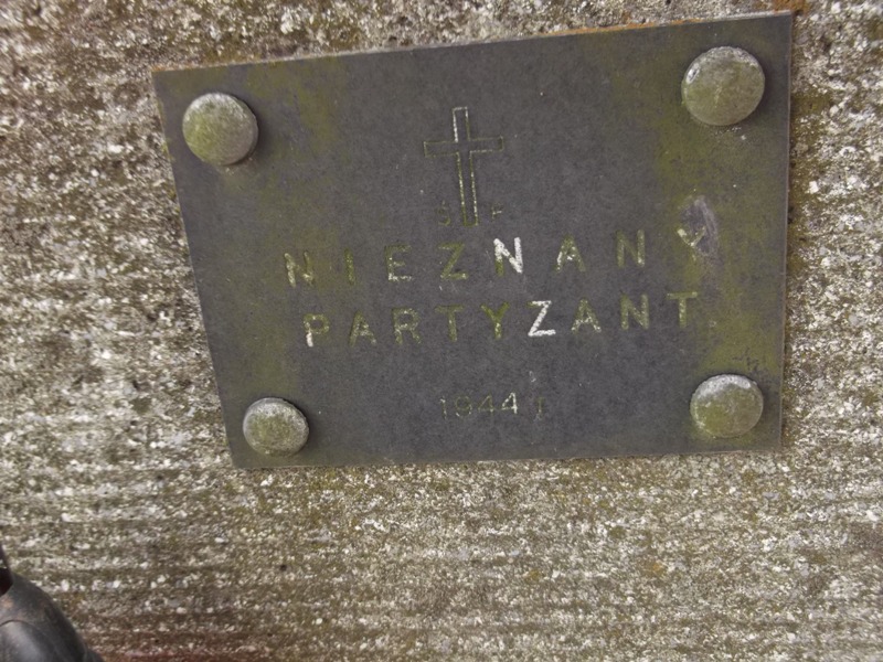 Mogiła ziemna, w betonowym obramowaniu, u wezgłowia prostokątna stela z tablicą z napisem: „Ś.†P./ NIEZNANY/ PARTYZANT/1944”. Pierwotnie na mogile znajdowała się owalna, emaliowana tablica z napisem: „NIEZNANY/ PARTYZANT/ POLEGŁ W 1944 r.”