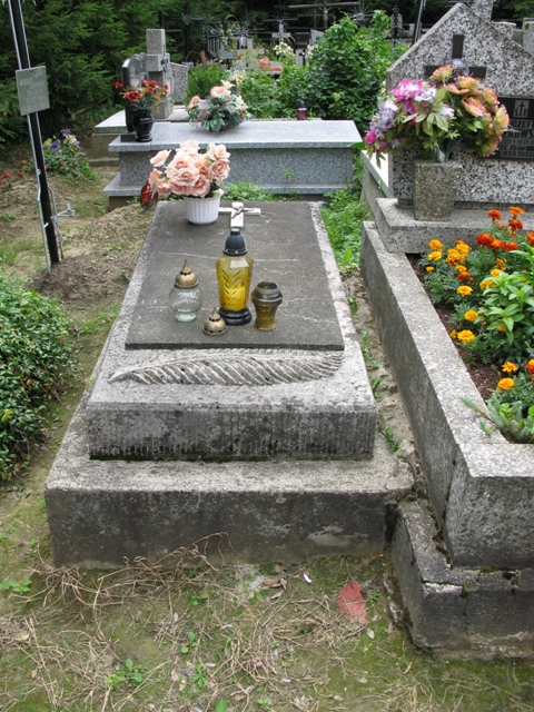Na mogile znajduje się dwustopniowy grobowiec z płaskorzeźbą liścia palmowego oraz płytą z krucyfiksem i nieczytelnym napisem memoratywnym.