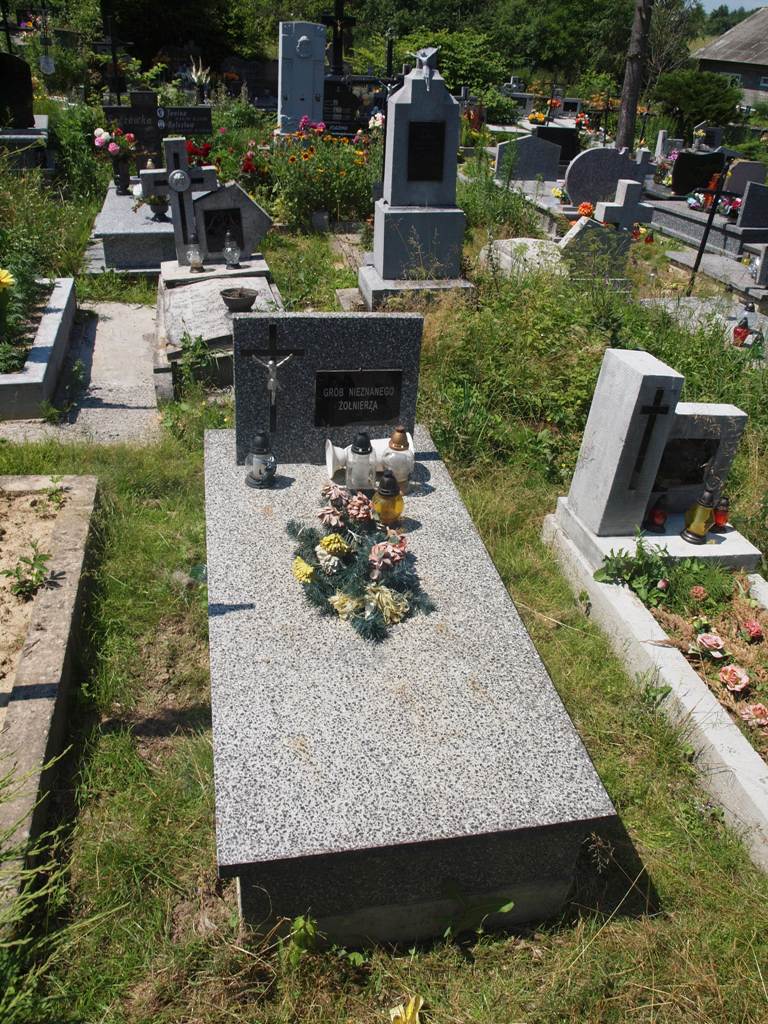 Lastrykowy nagrobek z prostokątną stelą u wezgłowia. Na licu steli umieszczony jest krzyż z pasyjką oraz tablica z napisem: „GRÓB/ NIEZNANEGO ŻOŁNIERZA”.