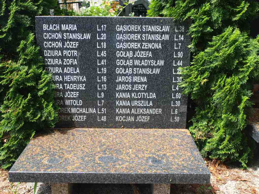 Ogółem na cmentarzu spoczęły szczątki 48 ofiar pacyfikacji wsi Trzonów, przeprowadzonej przez okupanta niemieckiego 13 grudnia 1944 r. Część została pochowana mogile zbiorowej, część w grobach indywidualnych. Wykaz pochowanych zawiera nazwiska wymienione w „Arkuszu grobownictwa wojennego” z 1945 r. przechowywanym w Archiwum Narodowym w Krakowie.