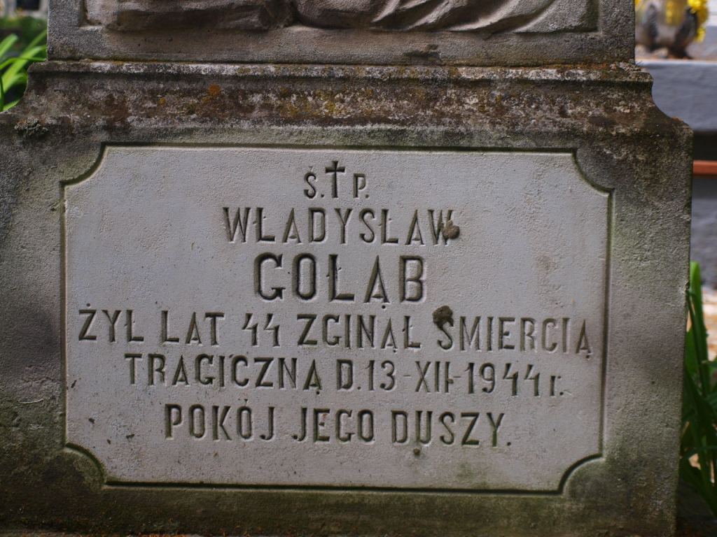 Pochowany tu Władysław Gołąb zginął z rąk okupanta niemieckiego 13 grudnia 1944 r. w czasie pacyfikacji wsi Trzonów.