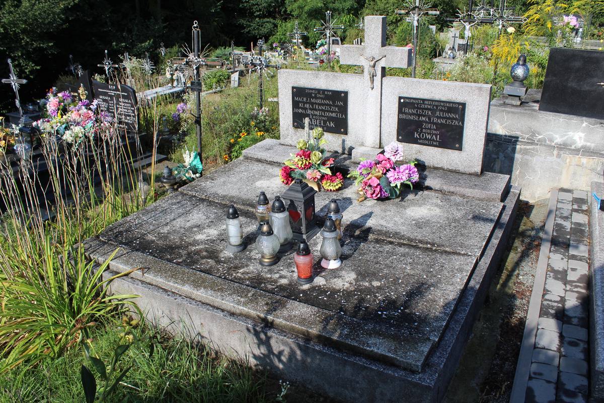 – „OKUPANTA HITLEROWSKIEGO/ 4 CZERWCA 1943/ FRANCISZEK, JULIANNA,/ BRONISŁAWA, FRANCISZKA/ ZOFIA/ Z RODZINY/ KOWAL/ MODLITWĘ”.