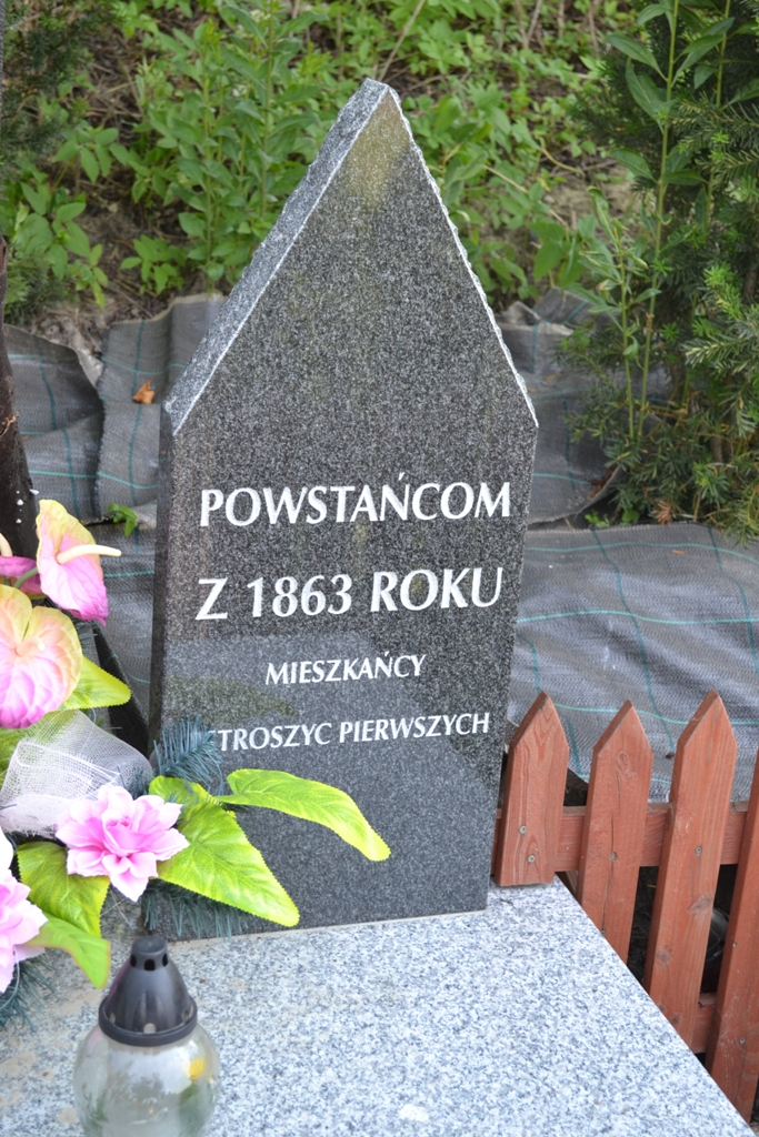 Mogiła ogrodzona jest płotkiem z drewnianych sztachet i poprzedzona schodami, wyłożonymi kostką brukową. Na mogile znajduje się granitowy nagrobek. U jego wezgłowia umieszczone są dwie zakończone trójkątnie stele: jedna – z wyobrażeniem orła wojskowego z datą „1863 r.”, druga – z napisem „POWSTAŃCOM/ Z 1863 ROKU/ MIESZKAŃCY/ PSTROSZYC PIERWSZYCH”. Za nagrobkiem znajduje się kapliczka szafkowa z czterospadowym daszkiem kopią obrazu Matki Boskiej Częstochowskiej. Przy kapliczce znajdują się pomalowane na czarno pień i konary drzewa.