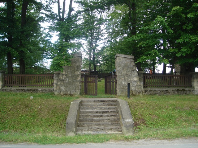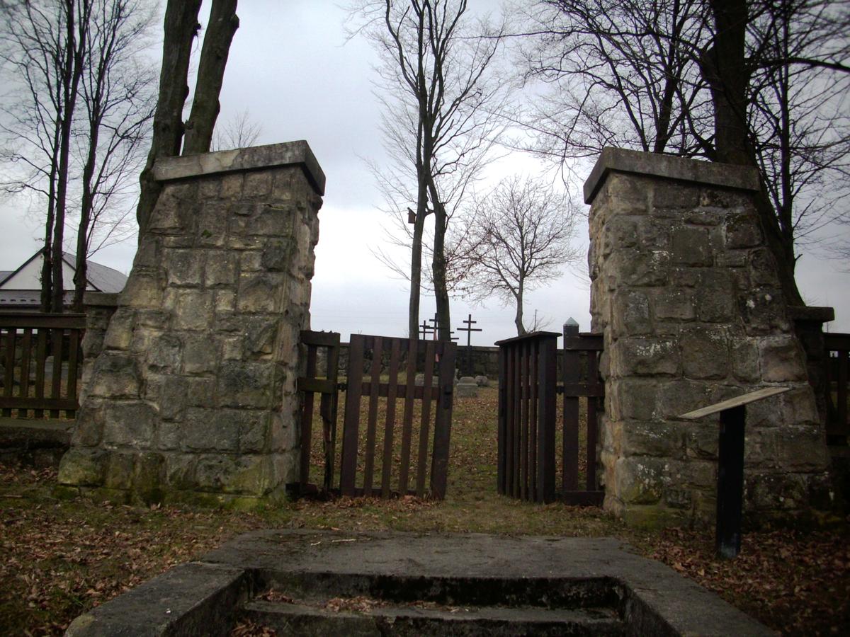 Cmentarz założony jest na planie prostokąta i ogrodzony od strony południowo zachodniej murem kamiennym, a z pozostałych stron kamiennymi słupami z betonową nakrywą połączonymi drewnianym płotem na podmurówce. Poprzedzone schodami, podestem, zamknięte dwuskrzydłowymi drewnianymi wrotami, wejście znajduje się od strony północno-wschodniej. Przed nim umieszczona jest pulpitowa tablica informacyjna ufundowana przez Powiat Gorlicki.