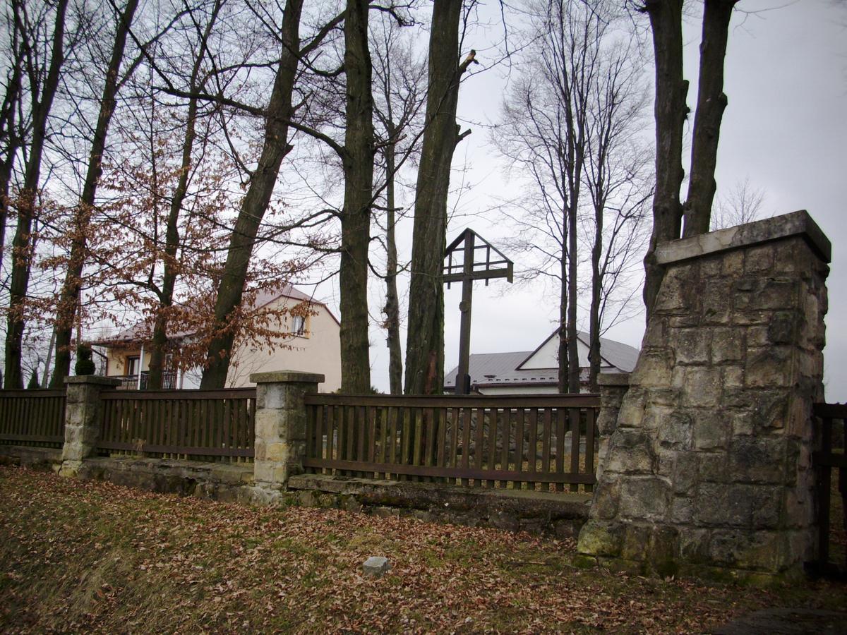 W południowej części cmentarza, na niskim kamiennym kopcu, ustawiony jest wysoki drewniany krzyż lotaryński z dwuspadowym zadaszeniem.