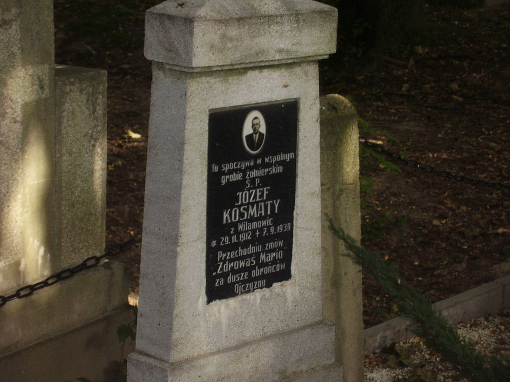 W obrębie kwatery znajduje się również nagrobek Józefa Kosmatego z 4 Pułku Strzelców Podhalańskich w kształcie krucyfiksu umieszczonego na wysokim postumencie. Na przedniej ścianie pomnika znajduje tablica z medalionem przedstawiającym fotografię zmarłego i napisem memoratywnym:„Tu spoczywa w wspólnym grobie żołnierskim Ś.P. JÓZEF KOSMATY z Wilamowic * 29.11.1912 † 7.9.1939. Przechodniu zmów Zdrowaś Mario za duszę obrońców Ojczyzny”.