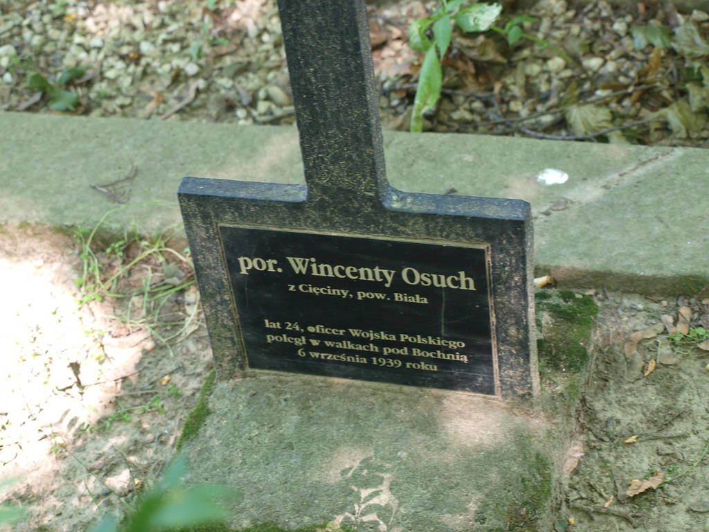 "ODDALI ŻYCIE OJCZYŹNIE/ MIEJSCEM ICH WIECZNEGO SPOCZYNKU/ STAŁA SIĘ BOCHNIA/ POLEGLI W WALKACH O MIASTO/ 5-6 WRZEŚNIA 1939 ROKU"