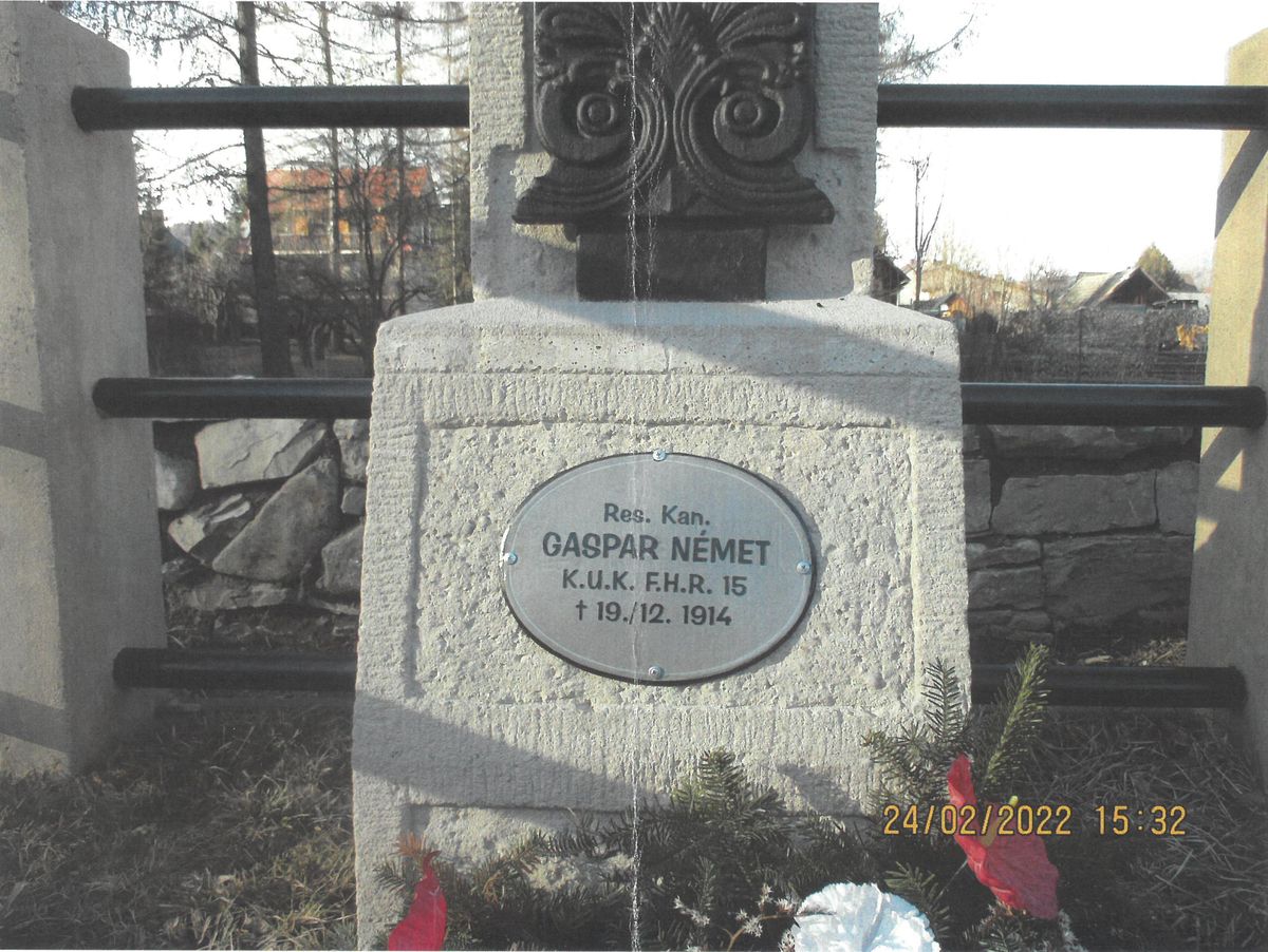 Na postumencie krzyża umieszczona jest owalna emaliowana tabliczka z danymi zmarłego żołnierza armii austro-węgierskiej.