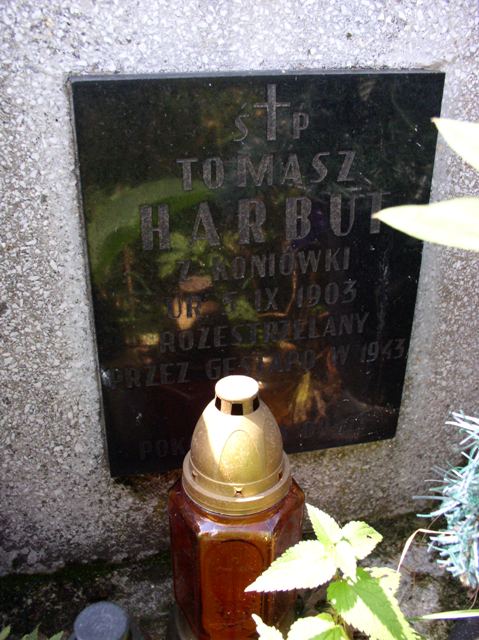 Tomasz Harbut był partyzantem AK, oddziału Bolesława Duszy ps. "Szarota". Został rozstrzelany przez okupanta 1 grudnia 1943 r.