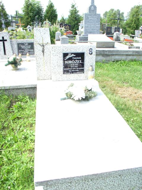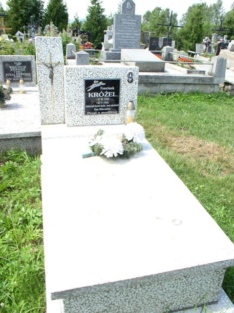 Mogiła obramowana i nakryta lastrykową płytą. U wezgłowia znajduje się lastrykowy, prostopadłościenny słupek z krucyfiksem na przedniej ścianie oraz prostokątna stela z lastryka. Umieszczono na niej tablicę z czarnego szkła z napisem: „FRANCISZEK/ KRÓŻEL/ + 27 IX 1925/ + 27 V 1943/ Zniszczyli kwiat życia mej młodości/ Katy hitlerowskie/ Prosi o modlitwę.”. W prawym górnym rogu steli umieszczone jest zdjęcie zmarłego.