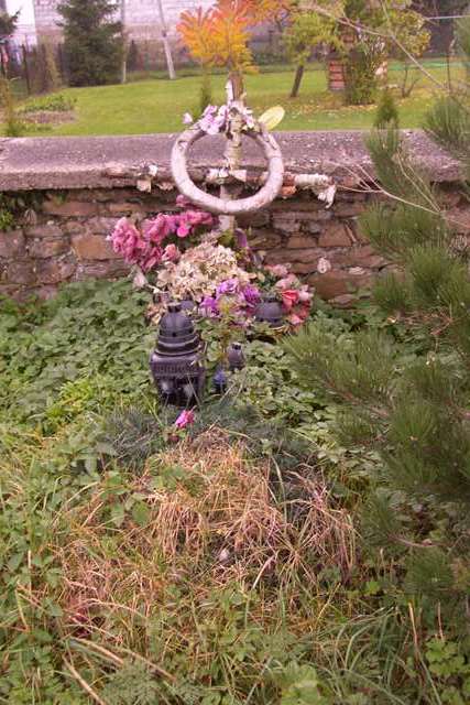 Mogiła ziemna oznaczona brzozowym krzyżem. W czasie I wojny światowej pochowano tu nieznanego żołnierza.