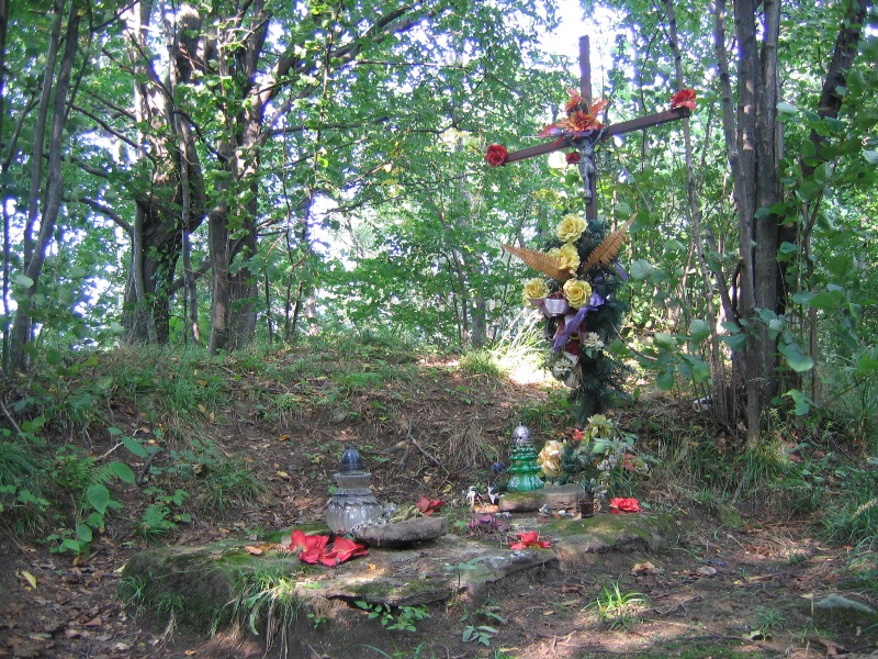 Mogiła ziemna, obłożona kamieniami. U wezgłowia krzyż z metalowych listew z pasyjką na skrzyżowaniu ramion.