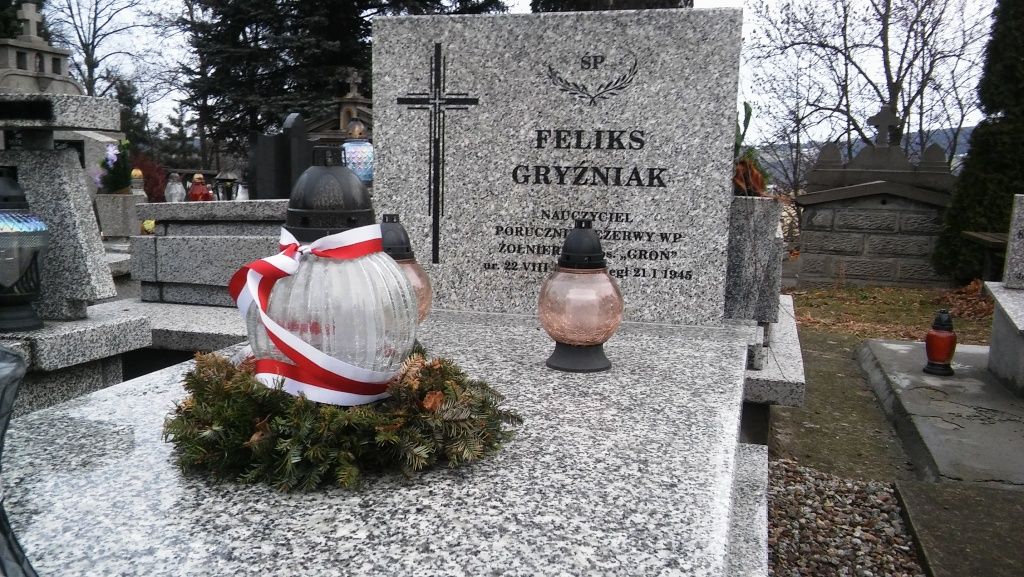 Pochowano tu Feliksa Gryźniaka, żołnierza Armii Krajowej, który zmarł z ran odniesionych podczas patrolu w styczniu 1945 r.