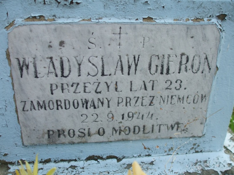 Władysław Gieroń został zastrzelony przez okupanta niemieckiego 22 września 1944 r.