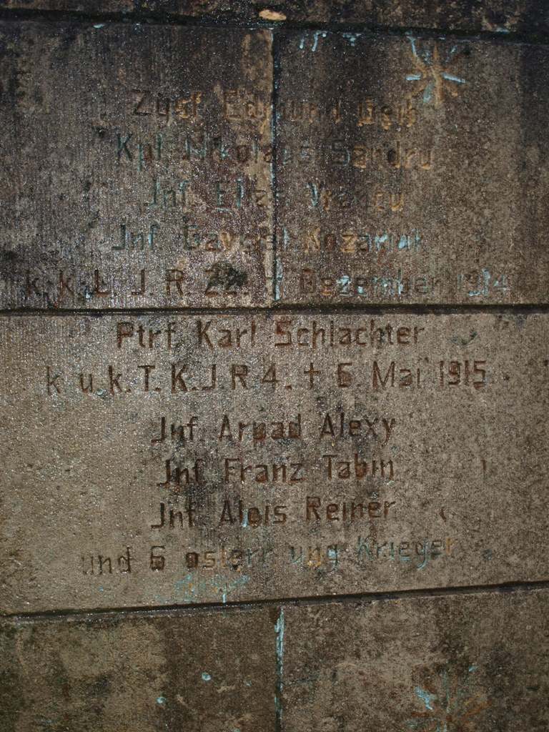 Na cmentarzu pochowano 14 żołnierzy z armii austro-węgierskiej i 18 z armii rosyjskiej poległych w latach 1914-1915. Znane są nazwiska 10 pochowanych.