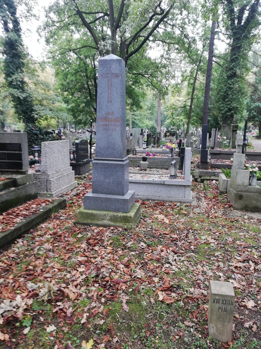 MOGIŁA POJEDYNCZA JANA FORMANDLA, ŻOŁNIERZA ARMII AUSTRO-WĘGIERSKIEJ Z 1917 R. NA CMENTARZU RAKOWICKIM W KRAKOWIE (XXIIB, RZ. PN., GRÓB NR 3 OD PRAWEJ)