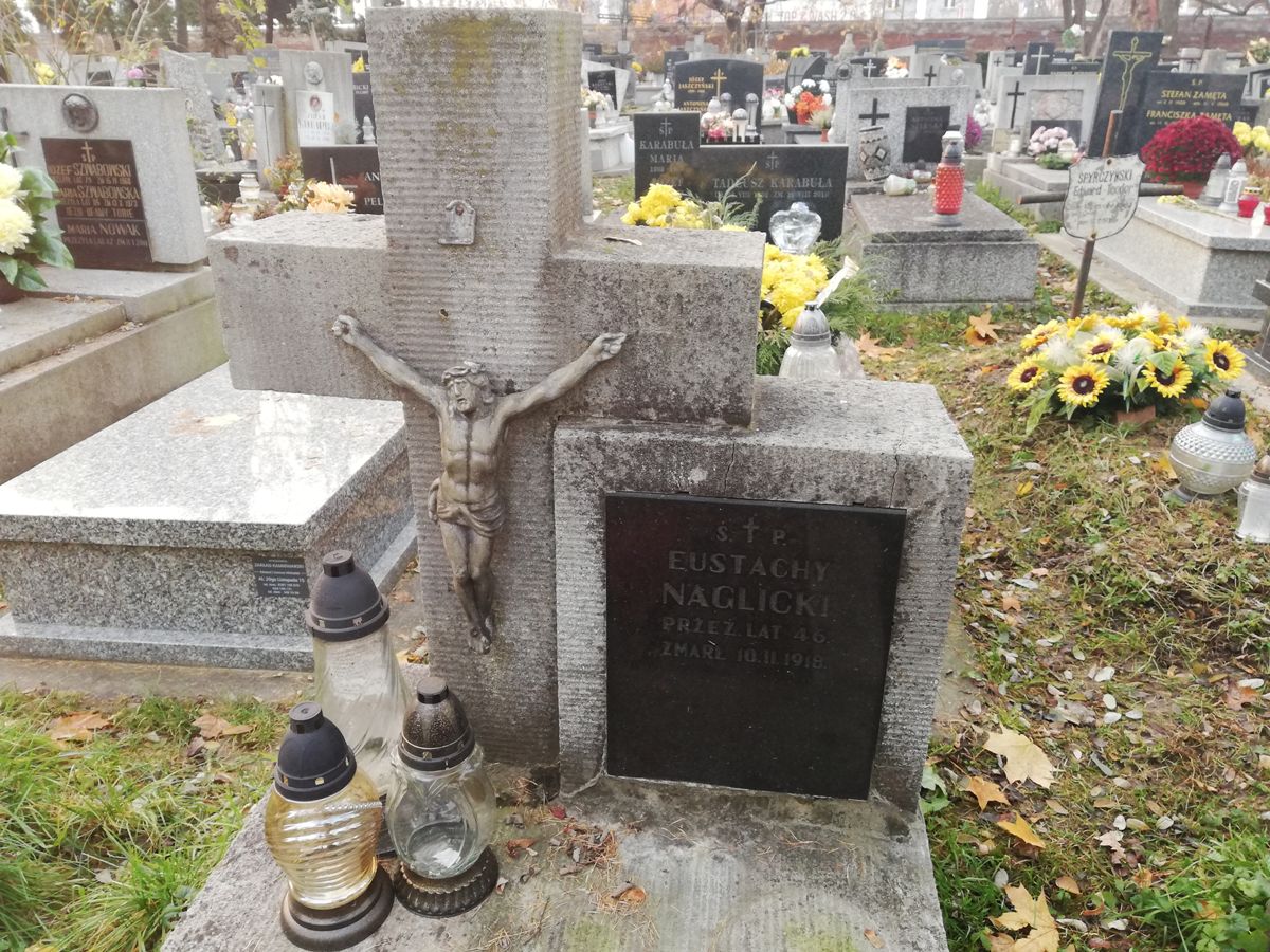 MOGIŁA ST. SZEREGOWEGO EUSTACHEGO NAGLICKIEGO, ŻOŁNIERZA ARMII AUSTRO-WĘGIERSKIEJ Z 1918 R. NA CMENTARZU RAKOWICKIM W KRAKOWIE (KW. XXVII RZ. 11, GRÓB NR 9)